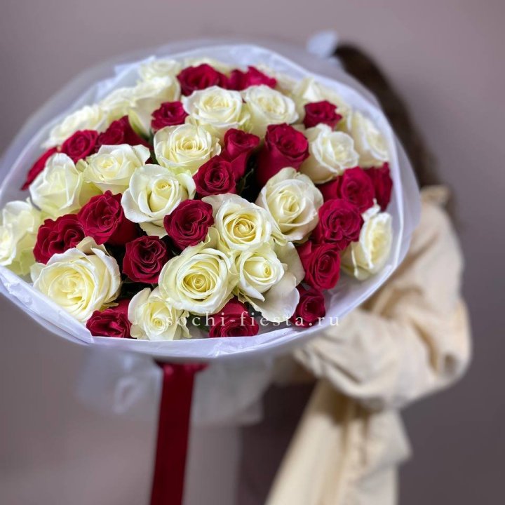 Букет из красных белых 45 роз