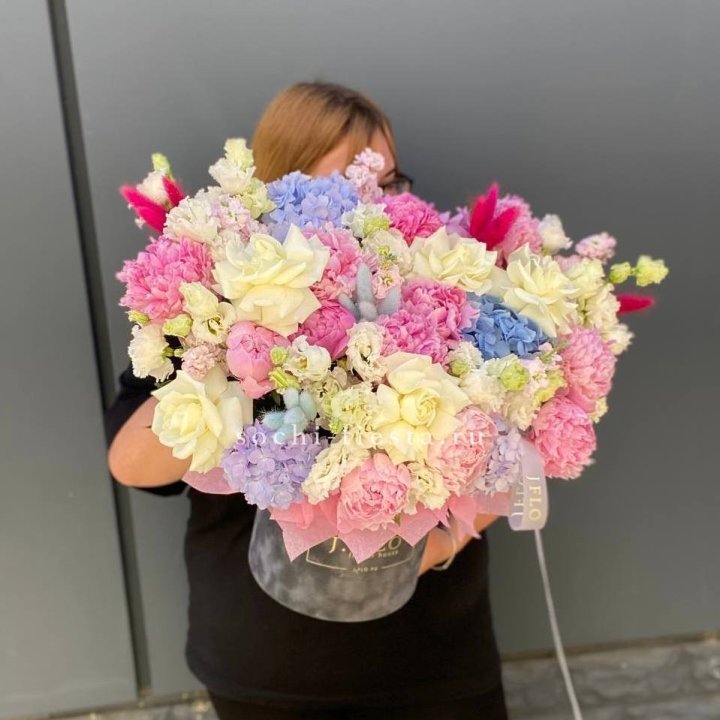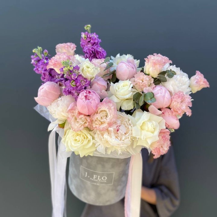 Дизайнерский цилиндр с пионами "Саманта"