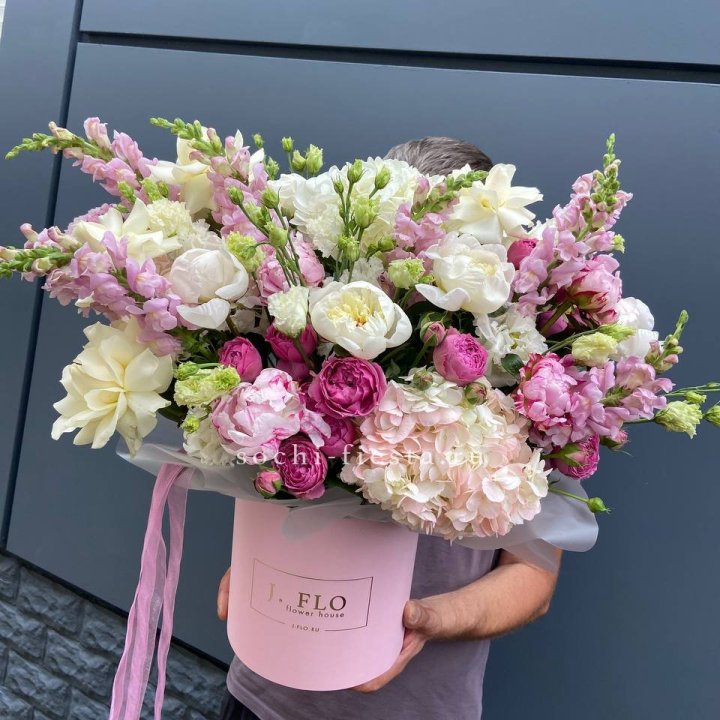 Дизайнерский цилиндр с пионами "Ривьера"