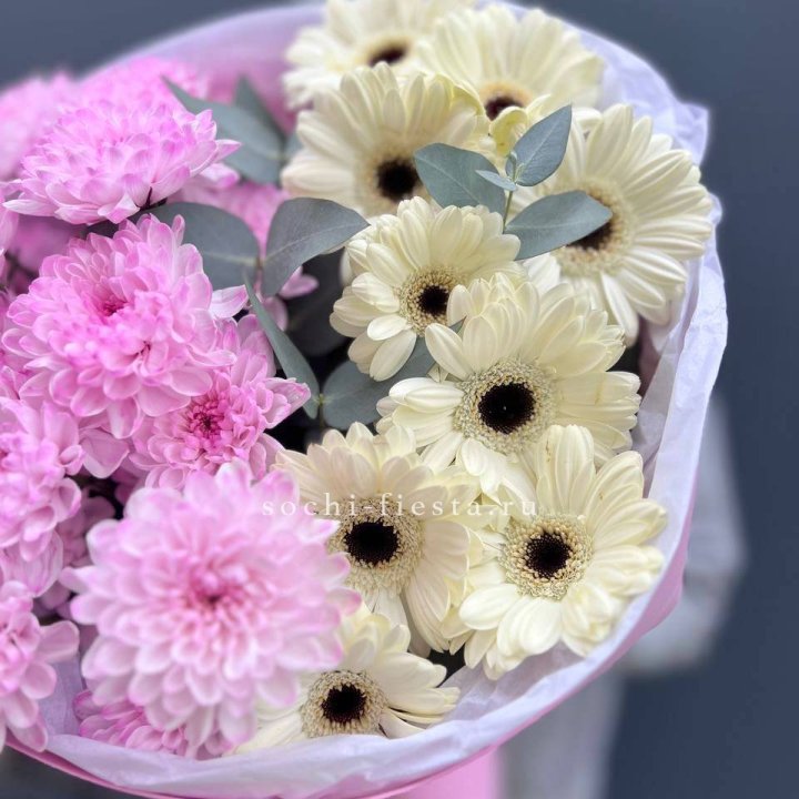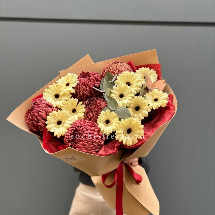 Букет гербер и хризантем Бигуди