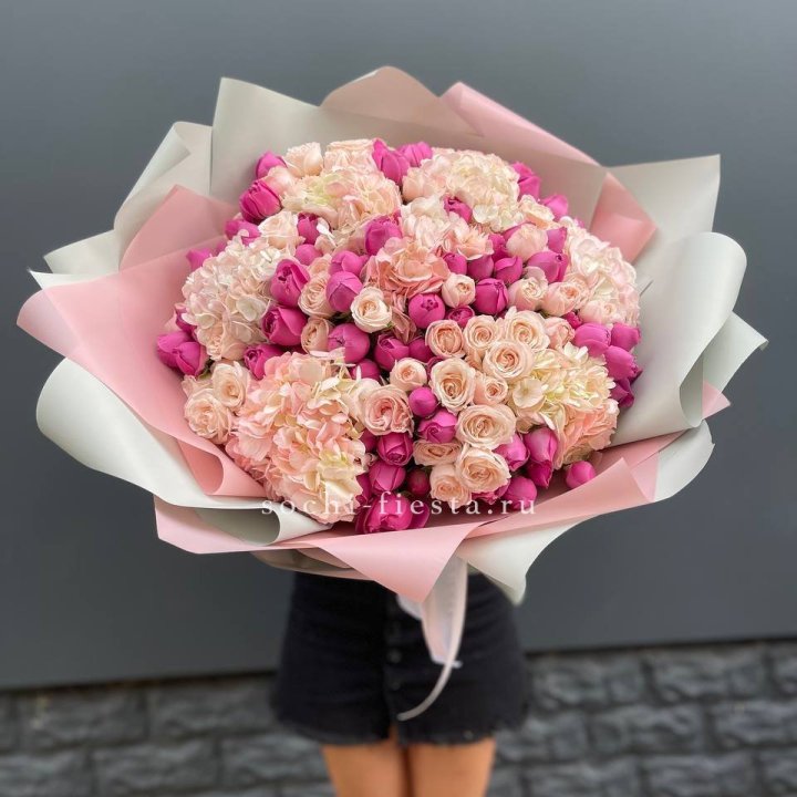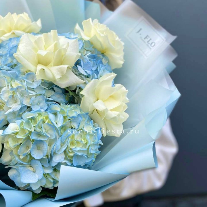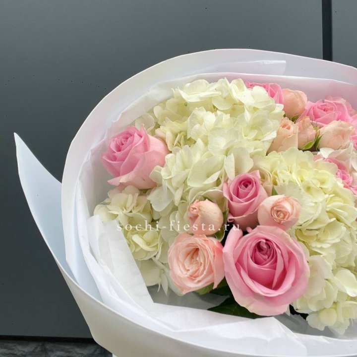 Букет гортензии и роз "Тиамо"