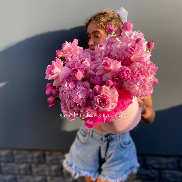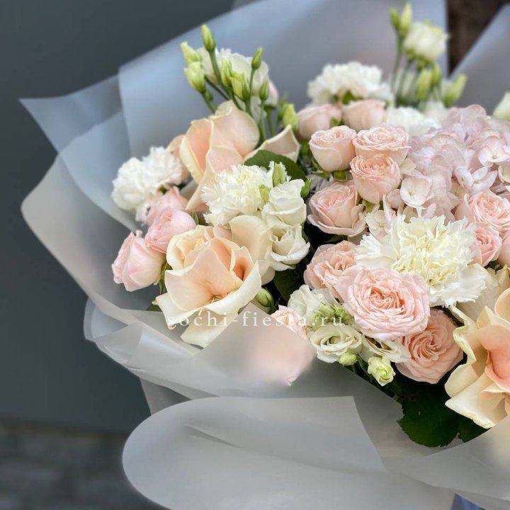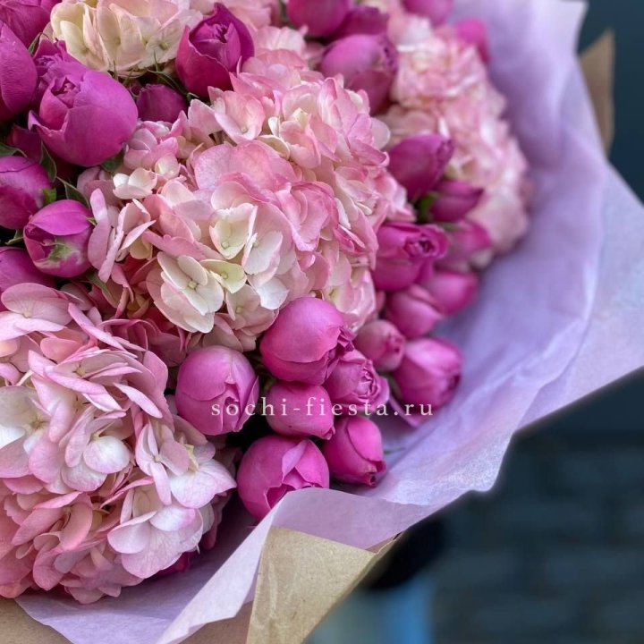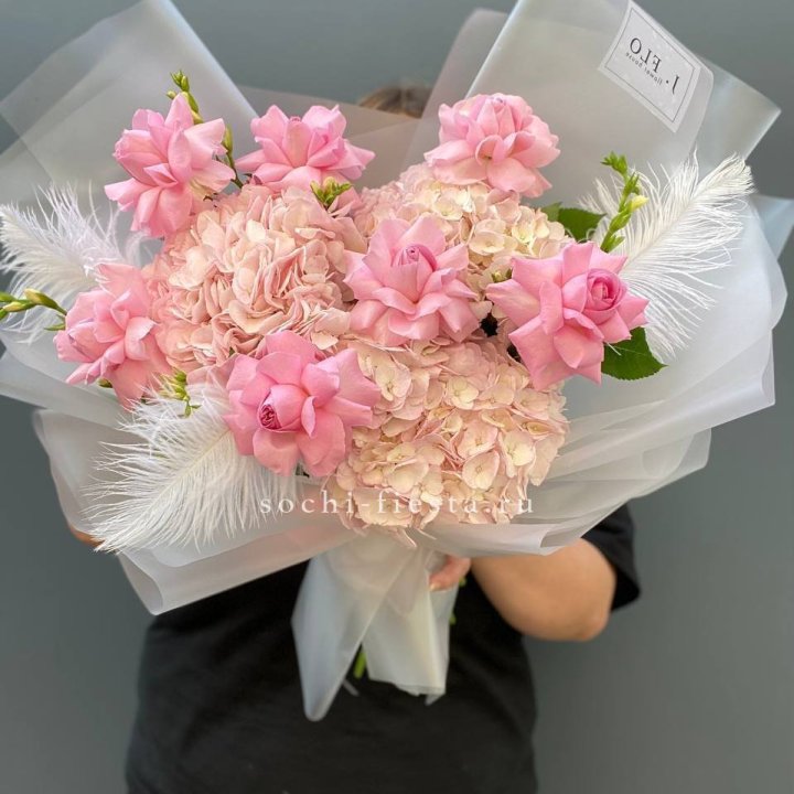 Букет из гортензий и розовых роз