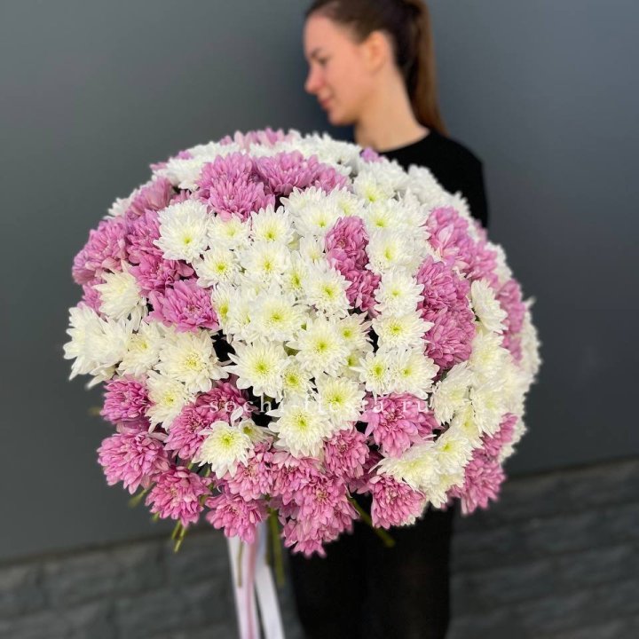 Букет бело-розовых хризантем