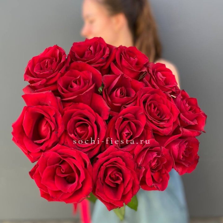 15 красных роз под ленту