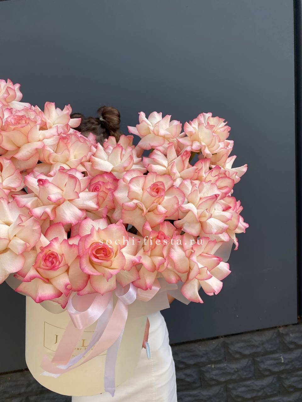 Для заказа товара "31 французская роза Джумилия в боксе" с доставкой в Омске нажмите в корзину