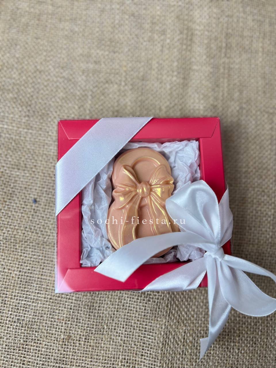 цифра 8 из бельгийского шоколада (белый шоколад: сахар, масло какао, сухое цельное молоко, соевый лецитин, натуральный амортизатор Ваниль). Ручная роспись.