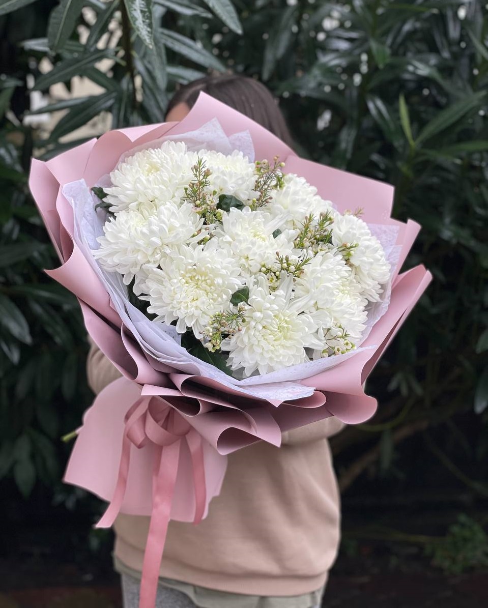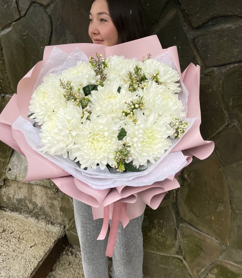 Погрузитесь в облако нежности и аромата! Этот восхитительный букет объединяет пышные шапки хризантем, изысканные бутоны лилий и свежий эвкалипт. Сочетание текстур и деликатных оттенков белого создает ощущение легкости и свежести. Это идеальный подарок для выражения самых светлых и теплых чувств, который растопит любое сердце и наполнит дом чудесным запахом.