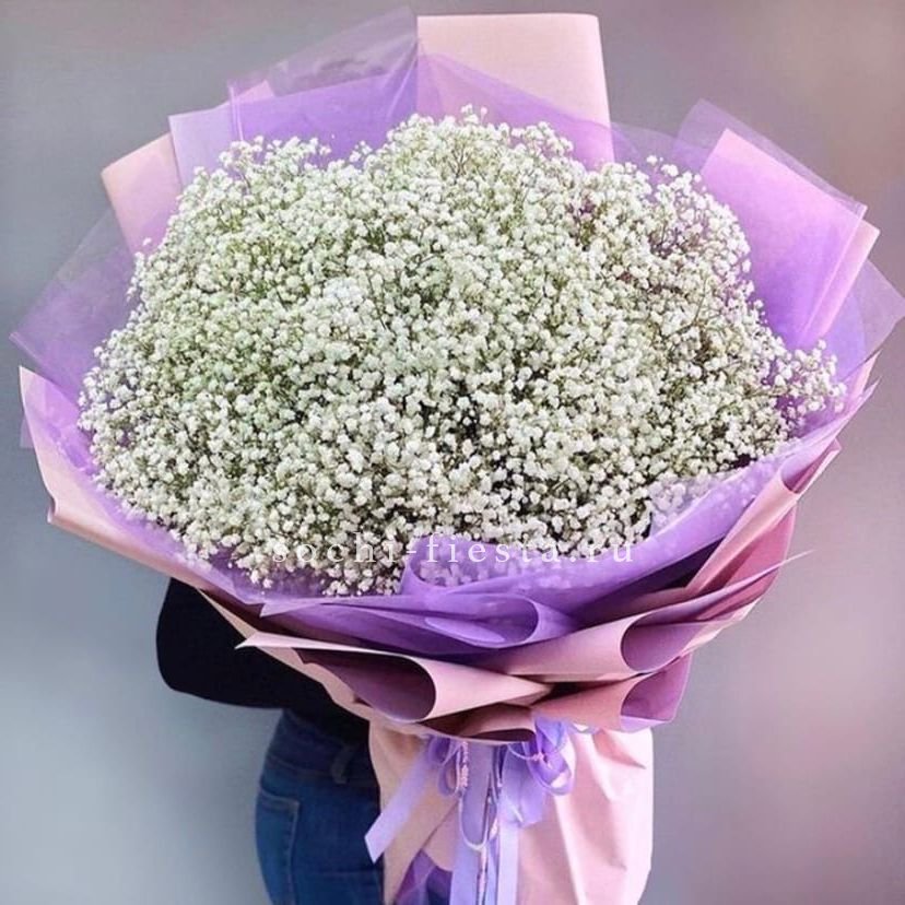 25 белоснежных голландских гипсофил, лента, упаковка.