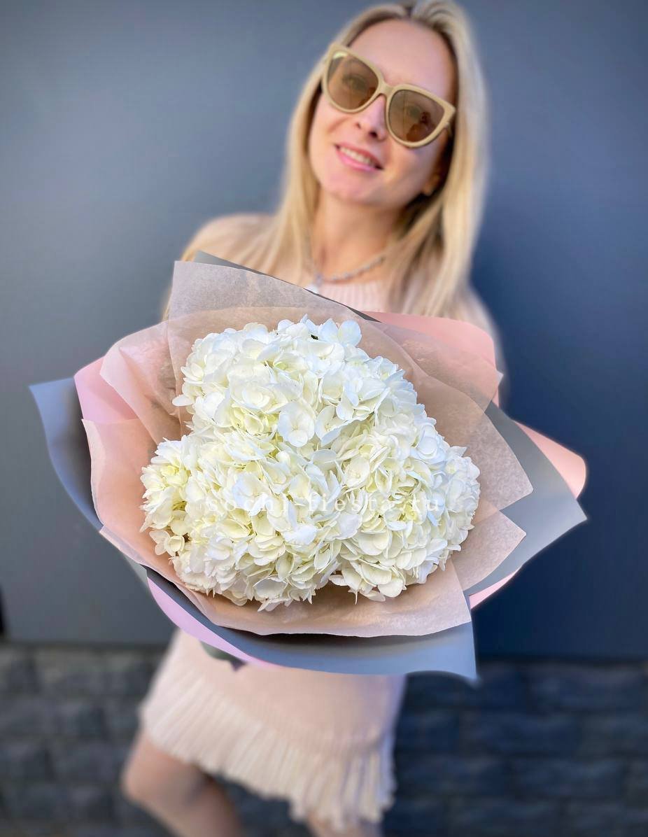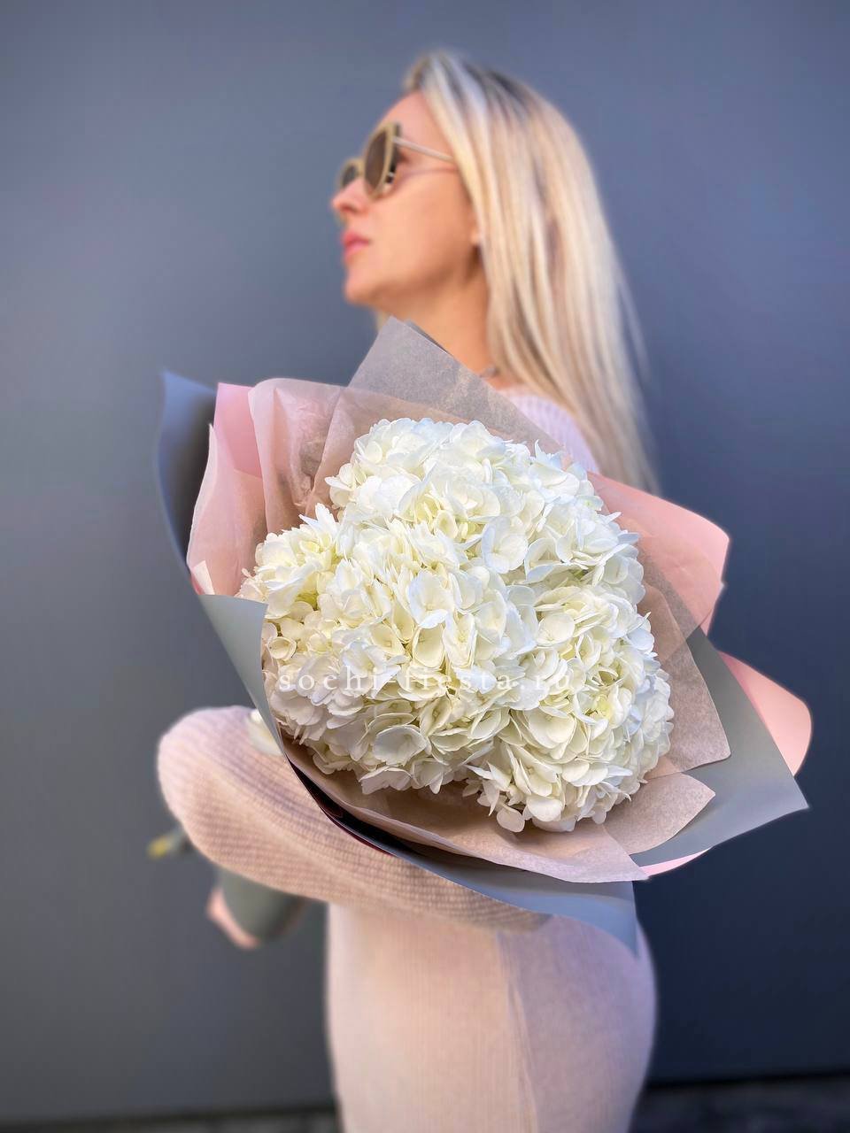 Для заказа товара "Букет из трёх белых гортензий" с доставкой в Омске нажмите в корзину