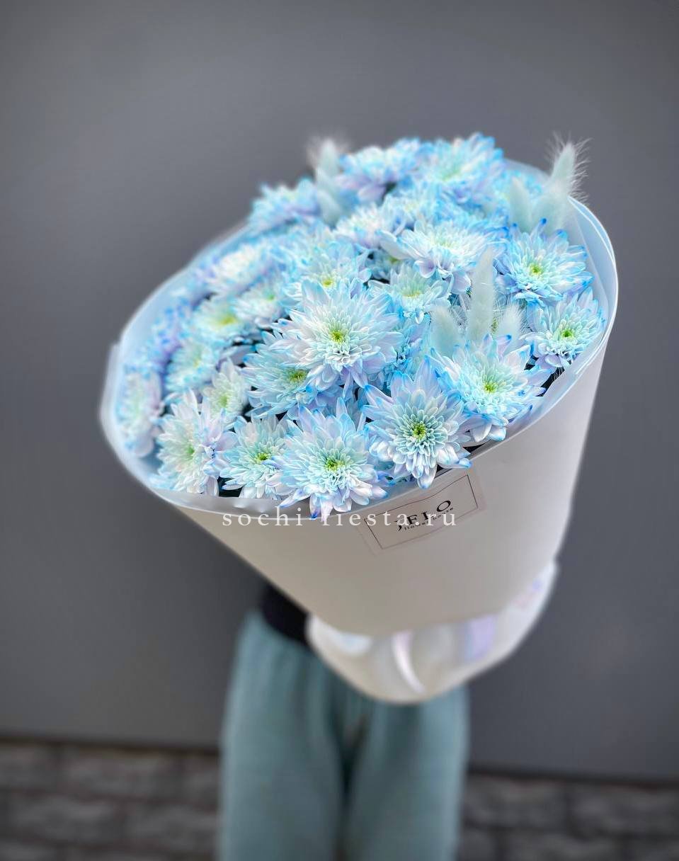 хризантема кустовая -9 шт., лента, дизайнерская пленка.