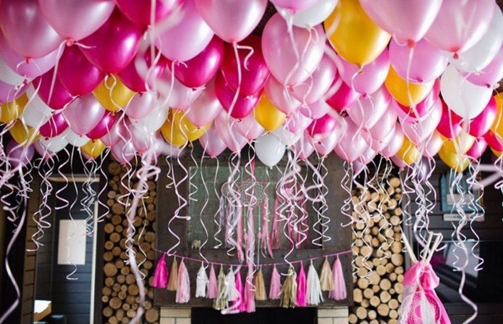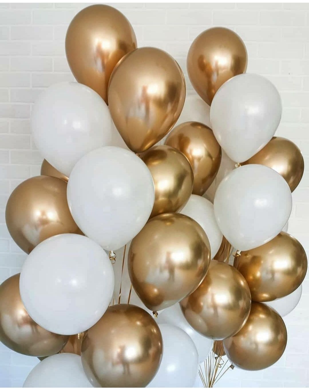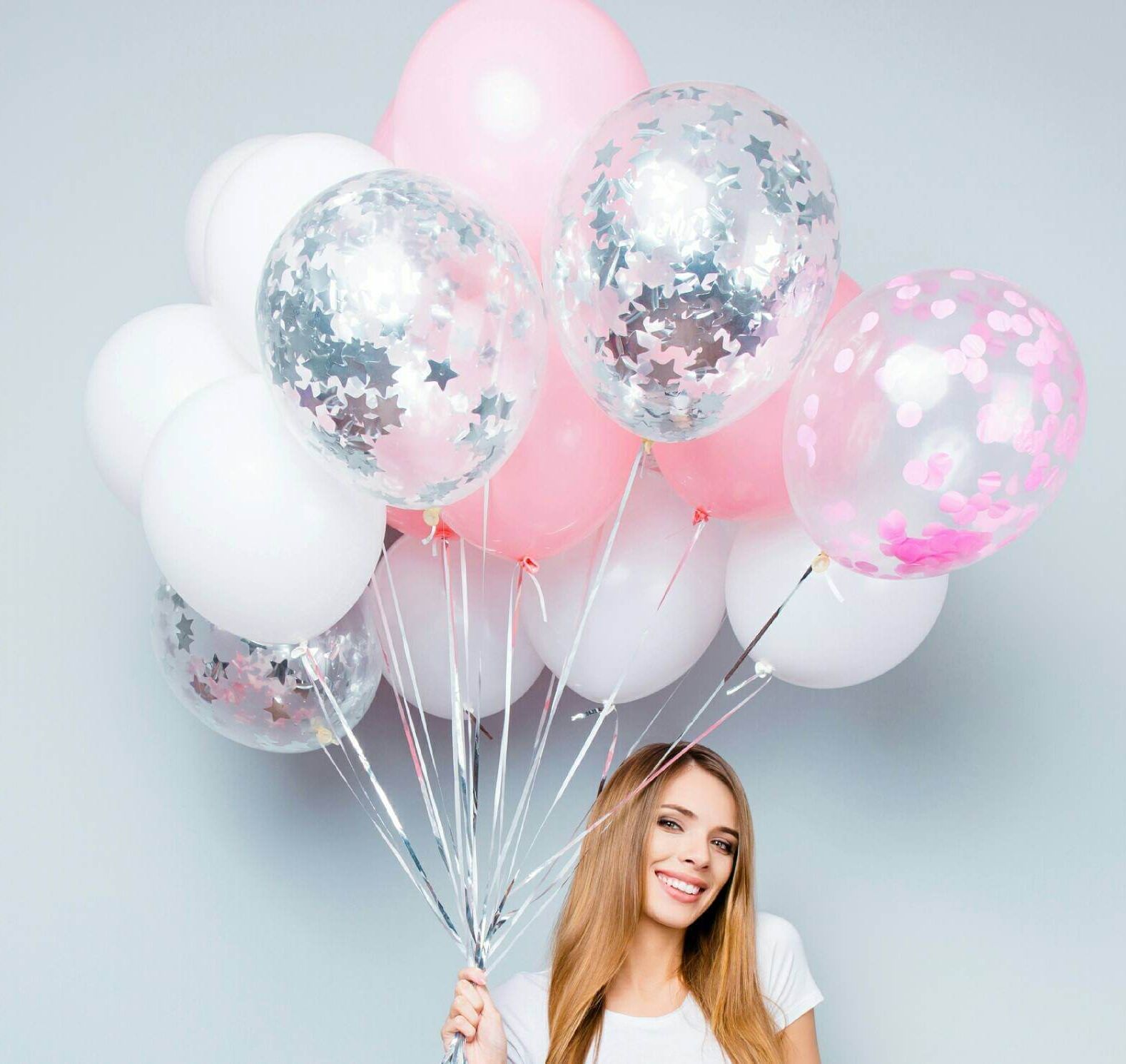6 шт. шаров с наполнением "Confetti", 15 шт. хромированных шаров, грузик. Все шары мы предварительно обрабатываем специальным составом Highfloat, обеспечивая им длительный срок полета.