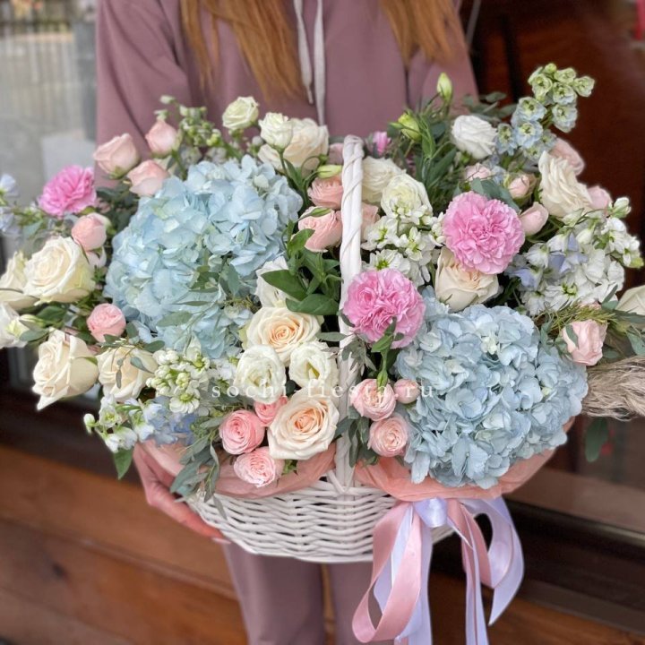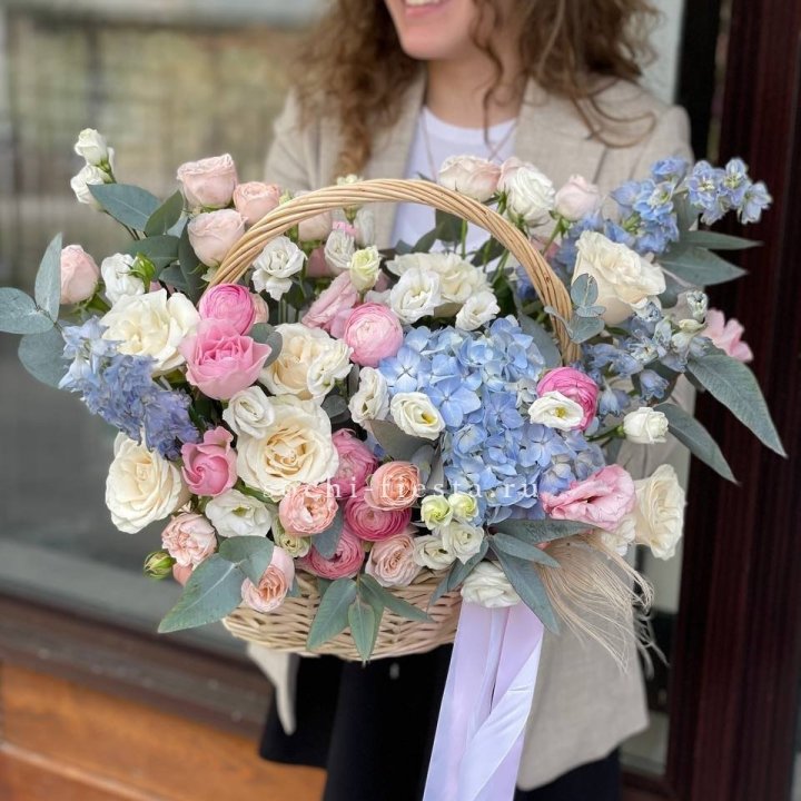 Доставка корзин в Омске — специальный транспорт или курьер с лотком. Флорист фотографирует корзину перед отправкой и согласует с клиентом. Крупные корпоративные партии — собственный фургон. Самовывоз из студии — популярная опция для именинных корзин, которые везут в машине.