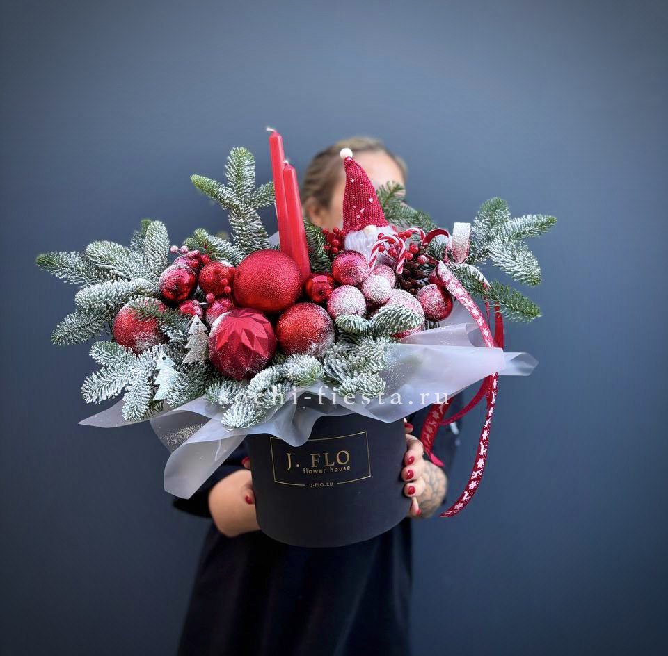нобилис, цилиндр, оазис, свечи, новогодние игрушки, декор ВНИМАНИЕ! Готовая композиция (декор) может иметь незначительные внешние отличия от примера на фотографии.