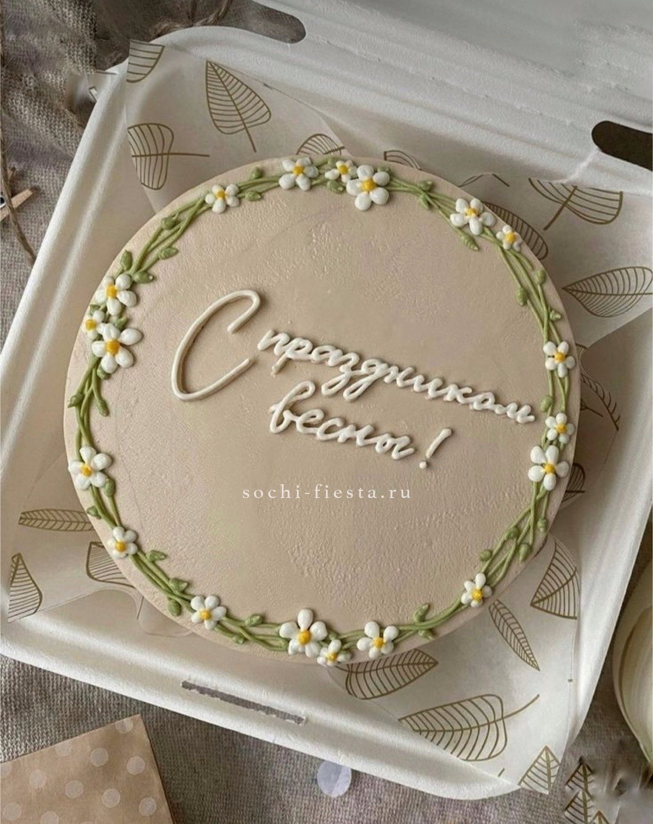 Компактный десерт ручной работы с весенним оформлением в красно-белой гамме. Кремовая текстура и графичный декор создают праздничное настроение. Два варианта начинки позволяют выбрать любимый вкус.