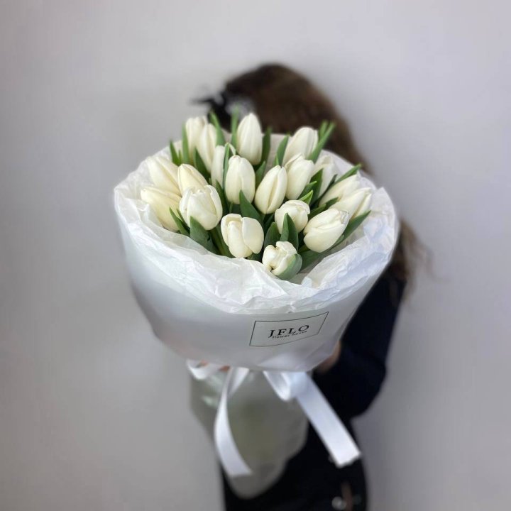 19 белых воздушных тюльпанов
