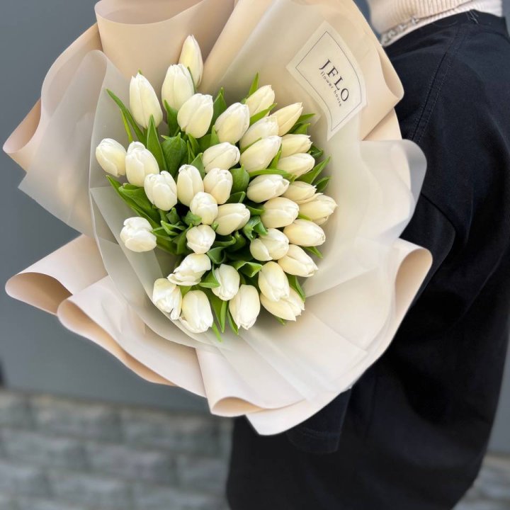 35 белых тюльпанов
