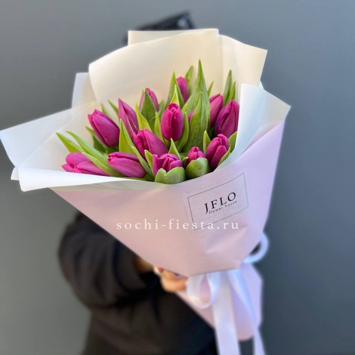 15 пурпурных тюльпанов